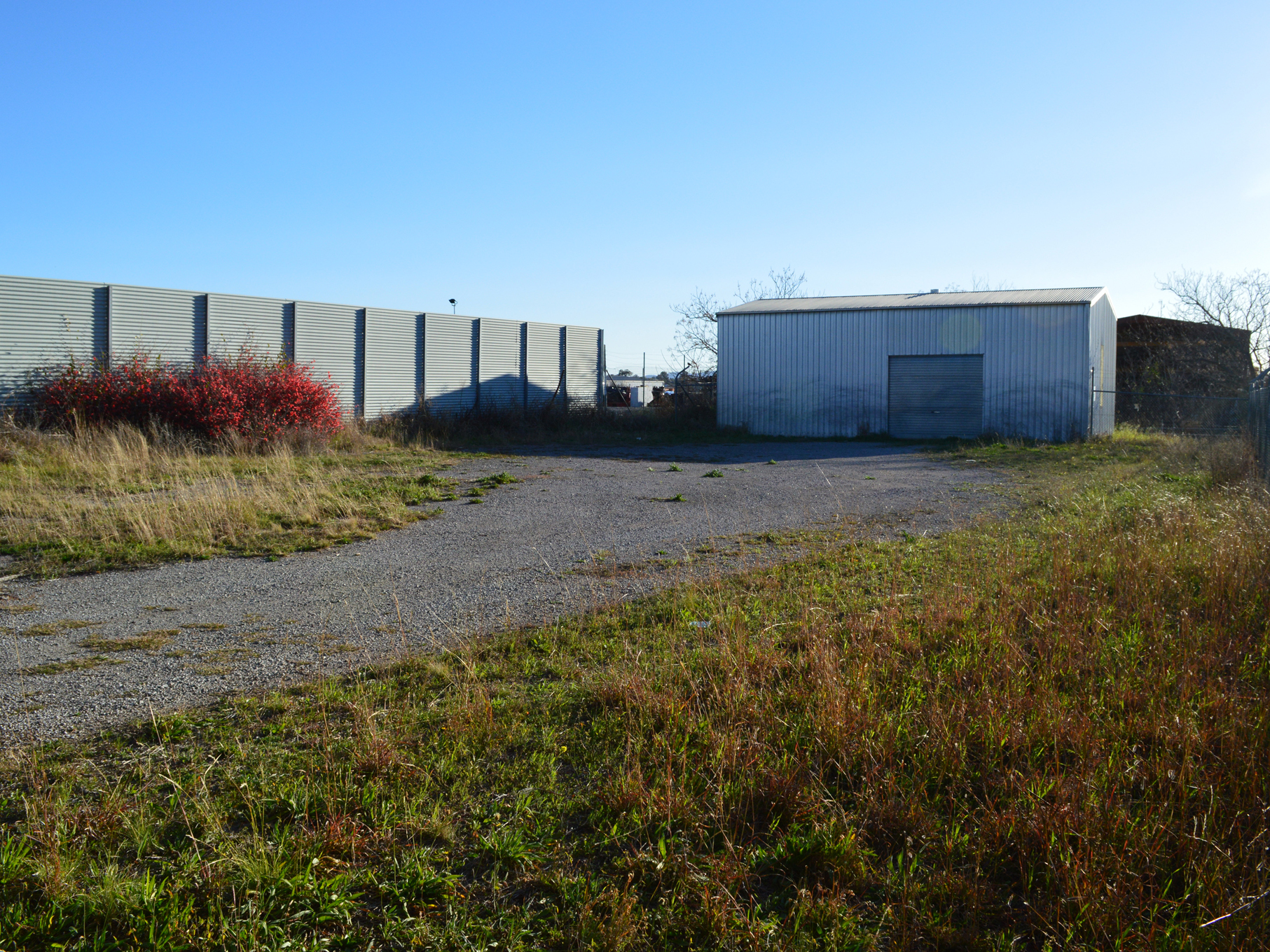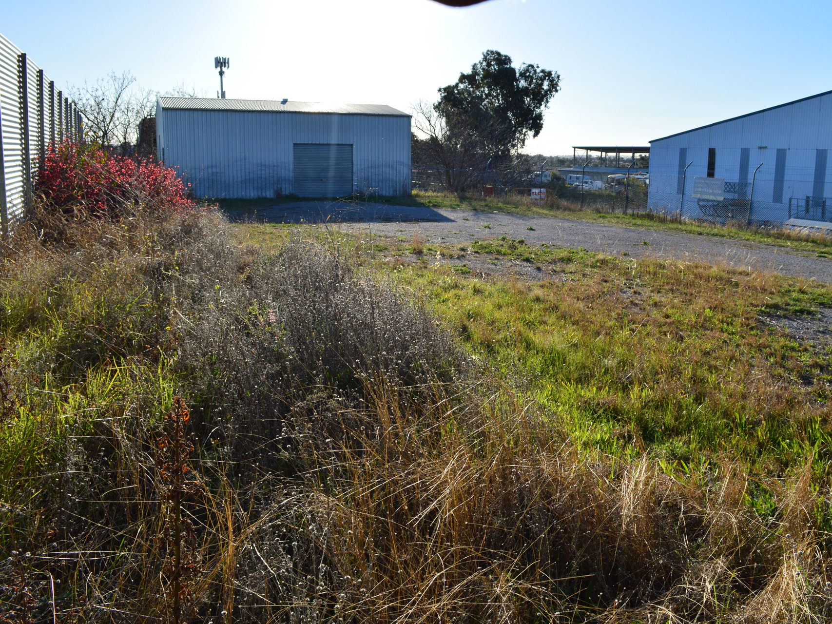 The block has a shed with no running water or power. The shed is 7 meters deep, 12 meters wide, 5 meters high. Door opening is 2.4 meters wide x 3 meters high. The shed is on a concrete slab with iron construction. The property is fully fenced apart from the front access.